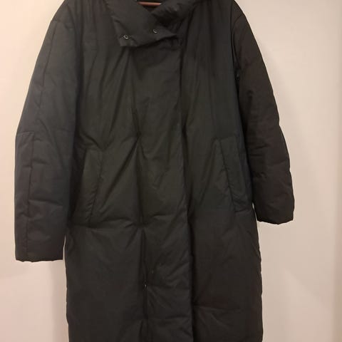 Marimekon katja solid untuvatakki. Makuupussitakkimainen pitkä muhkea untuvatakki. 80% untuvaa/20% höyheniä. Takissa 2-suuntainen vetoketju, nepparisuljettava tuulilippa ja korkea suojaava kaulus, neppareilla irroitettava hyvin suojaava kiristettävä huppu, taskut. Hyvin vähän käytetty siisti, ehjä ja lämmin