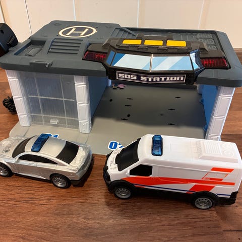 Myydään "sos station" -pelastusasema ajoneuvoineen (3kpl). Ehjä. Aseman valot ja äänet sekä "megafoni" toimii (eli siihen kun puhuu, niin ääni kuuluu kaiuttimesta).