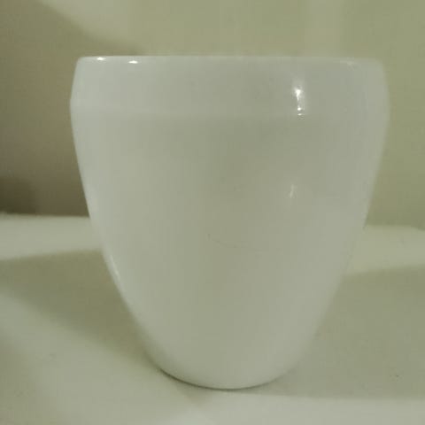 Harmaanruskea ruukku. Aukon halkaisija noin 15 cm ja korkeus 16 cm. Ostettu Stockalta.