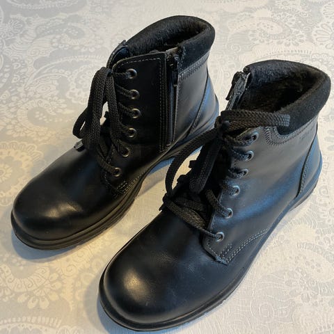 Todella vähän käytetyt mustat Sievin talvinilkkurit. Sivuilla kaksi vetoketjua auttaa pukemisessa. Leveä lesti ja pitävä pohja. Kuvissa näkyy pohjallisen mitat.