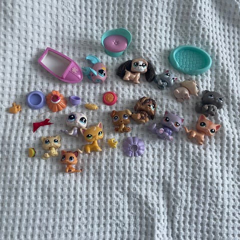 Littlest Pet Shop tarvikkeita. Erittäin hyvässä kunnossa. Tarvittaessa voi ostaa tästä setistä myös yksittäisiä tavaroita.