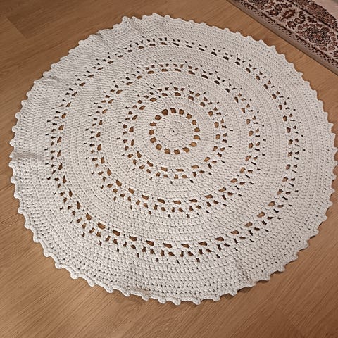 Myynnissä myös iso virkattu matto!