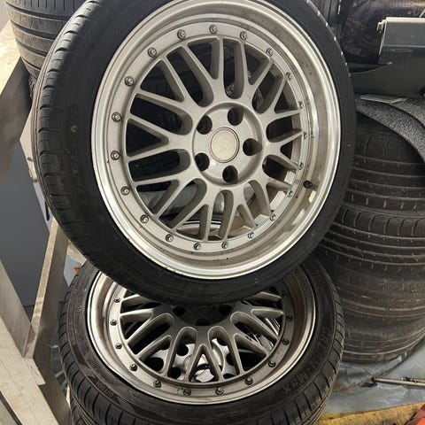 Fiksukuntoiset vanteet bemariin hyvillä renkailla. Ei kierossa tai hitsailtu. Kaikki koossa 18x8 et25. Kumeissa 6-7mm pintaa ja paisto 46/23.