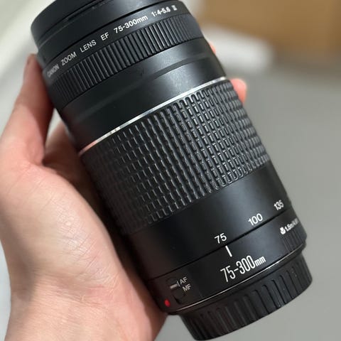 Käytetty Canon 75-300mm pienikokoinen ja kevyt telezoom, sopii mainiosti luonto- ja urheilukuvaukseen esimerkiksi perus kittiobjektiivin rinnalle.Yhteensopivuus: Yhteensopiva sekä Canonin täyden (Full-frame) että pienen kennon (APS-C) kameroiden kanssa. Canon EOS R -sarjan kameroihin tarvitset EF-EOS R Mount adapterin.Käytetyn kunto: Täysin toimiva ja hyväkuntoinen objektiivi. Etulinssin pinnoitteessa ulkolaidalla muutama pieni hiusnaarmu, eivät vaikuta käytettävyyteen. Kaikki käytetyt laitteemme on testattu ja tarkistettu. Mukana: Objektiivin lisäksi tulpat molempiin päihin.Huomioithan, että käytettyjen laitteiden mukana tulevat lisävarusteet voivat vaihdella, eivätkä ne täysin vastaa alkuperäispakkauksen sisältöä.Takuu: 45pvALV-vähennyskelpoinen: Ei.