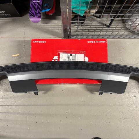 Audi diffuusori, musta väri kromi yksityiskohdilla, valmistettu kestävästä materiaalista, sopii auton takapuskuriin.