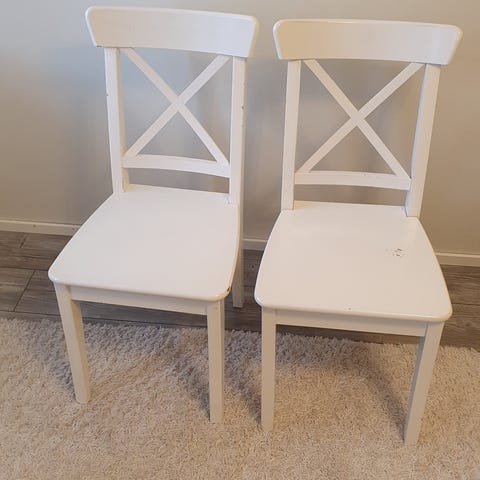 Myydään settinä kolme tuolia punotuilla istuimilla. Materiaali oletettavasti tammea. Ostettu käytettynä ja osan tuoleista puneet kaipaavat kiristystä tai ehkä vaihdon uusiin – en osaa sanoa. Istunkorkeus 45cm.