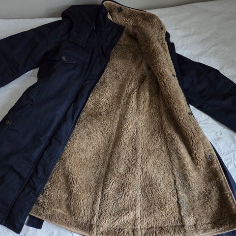 Musta ulkopuoli ja tummansininen tekoturkis sisäpuolella tekevät takista sekä trendikkään että käytännöllisen.