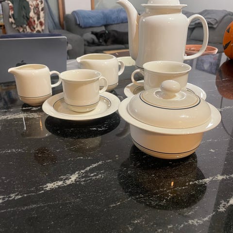 Löytyy myös kermakko ja sokeriastia ja niistä hinnat sovitaan erikseen.