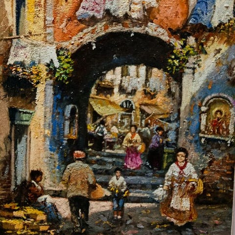 Kaunis ja upea öljy kankaalle, mitat 24 x 30, mestari Salvatore Montellan teos. Kuvassa on kaunis Napoli-kulma, ja kauniit värit kertovat erinomaisesta maalaustaidosta. Alareunassa on taiteilijan allekirjoitus.Peräisin yksityisomistuksesta ja seurattava lähetys.