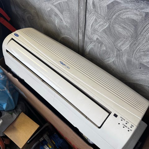 Sharp AE-X9FR ilmalämpöpumppu, toimivana irroitettu omasta toimistokäytöstä, kylmäaineet sisässä. Jatkuvalla käytöllä ollut, sisäyksikkö pitää hiukan ääntä. Hyvä ratkaisu esim tallin tms lämmitykseen. Nouto raisiosta kauppakeskus myllyn läheltä.