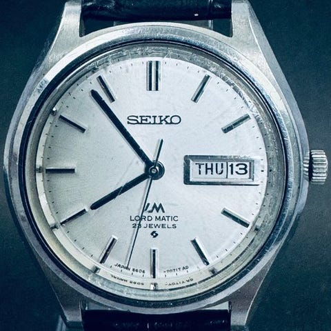 KuvausTapaus: 42 mm (läpimitta ilman kruunua) x 45 mm (luggista luggille); kehä ei pyöri.Kellotaulu: musta taulu, jossa valkoiset indeksit ja osoittimet.Päivä/päivämäärä: Quickset toimiiKristalli: lasi; naarmuja vasemmalla.Ranneke: Alkuperäinen Seiko-kumirannekeLukkoväli: 22 mmPituus mukaan lukien kellon pää: Vapaa kokoPalveluhistoria: TuntematonVakuutettu lähetys seuraavien kanavien kautta:Paikallinen toimitus: Paikallinen kirjattu postiKansainvälinen toimitus: DHL Express (toimitus saattaa viivästyä 1-2 viikolla vuoden lopun juhlasesongin vuoksi).TÄRKEITÄ HUOMAUTUKSIA!! HUOMAA ENNEN TARJOUKSEN TEKEMISTÄ!!1. Kello myydään sellaisenaan. Ellei toisin mainita, takuuta ei myönnetä eikä ajanottotarkkuutta, vedenkestävyyttä jne. koskevia vaatimuksia hyväksytä tai käsitellä.2. Ostaja on vastuussa kunkin maan veroviranomaisten mahdollisesti määräämistä tulli- ja/tai arvonlisäveroista. Tarkista siis epävarmat asiat asianmukaisilta viranomaisilta ja tee tarjous sen mukaisesti. Jos ostaja ei vastaanota toimitusta maksamatta jääneiden verojen vuoksi, ostaja on silti vastuussa kaikista toimitus-, tulliselvitys- ja muista hallintokuluista.3. Jos ostaja peruuttaa tilauksen toimituksen jälkeen, ostaja on vastuussa kaikista palautuskuluista, hallinto- ja tullimaksuista, jotka aiheutuvat kellon palauttamisesta ja uudelleentuonnista.4. Kansainvälinen transit (pois lukien tullaus ja viimeinen maili -toimitus) kestää yleensä enintään 2 viikkoa, mutta voi kestää pidempään riippuen maasta ja paikasta, julkisista vapaapäivistä, Ukrainan sodasta, globaalista pandemiatilanteesta ja niin edelleen.5. Huomioithan myös, että meillä ei ole vaikutusvaltaa tai määräysvaltaa siihen, kuinka nopeasti kunkin maan tulliviranomainen käsittelee paketin sen saapuessa maahanne. Siksi tarkista asia tulliviranomaiselta/postipalvelulta, kun lähetys saapuu maahanne.