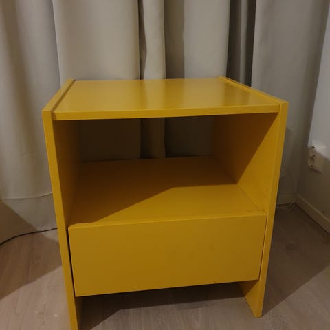 Vankka ja tyylikäs yöpöytä. Päällyskansi on entisöity juuri ennen myyntiin laittoa. Viimeisissä kuvissa näkyy pieni lakkaus vaurio mutta se ei ole onneksi silmään pistävä ilman salamanvaloa, sillä huomasin sen itsekkin vasta pyyhkiessä pölyjä.