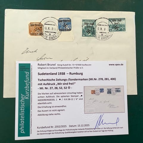 Bohemia ja Moravia 1938 - Rumberg: 4 sateenvarjo maisemaa, joissa on 'wir sind