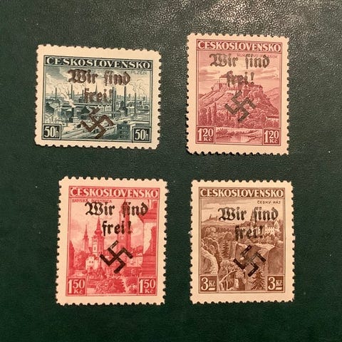Bohemia ja Moravia 1938 - Rumberg: 3 sinettiä, kilpi, jossa teksti 'wir sind