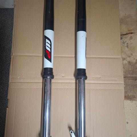 Pulverimaalatut kotarin t-palat myyntiin. Tarkaa väriä en tiedä. Mukaan tulee samalla värillä maalatut tangon kiinnikkeet jotka ei ole kuvassa. Peräisin 2010 vuosimallin pyörästä mutta pitäisi sopia ainakin 08-11 vuosimallien pyöriin.