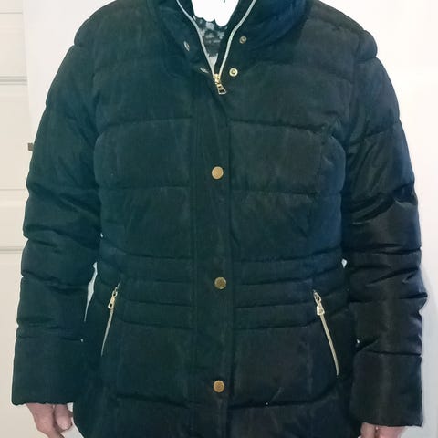 Musta toppatakki, Cropp. Kokomerkintä XL, mutta käytän M ja L kokoisia, ja mulle hyvän kokoinen. Lyhyt malli. UUSI.