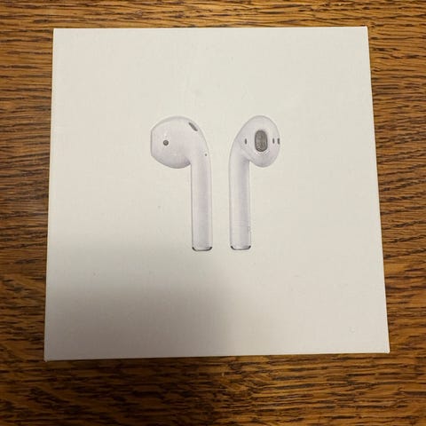 Applen airpods-kuulokkeet. Vasemmassa kuulokkeessa akun kesto huono (noin 10min), oikeassa kuulokkeessa akun kesto ainakin 1 tunti. Kotelon lataus toimii. Mukaan silikonisuoja kotelolle.
