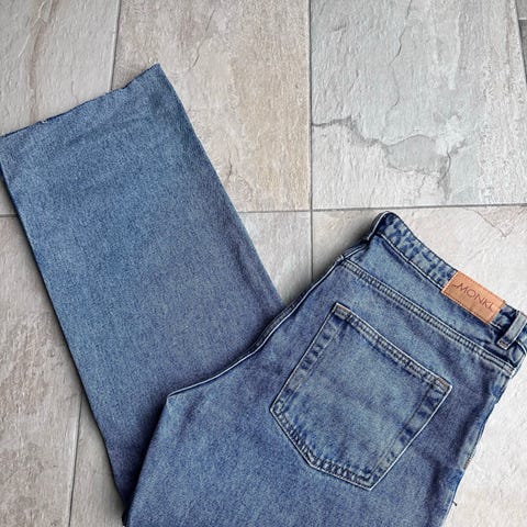 Myydään uudenveroiset Monkin tummat farkut koossa W29. Mom fit-tyylinen rento lahje ja korkeahko vyötärö.