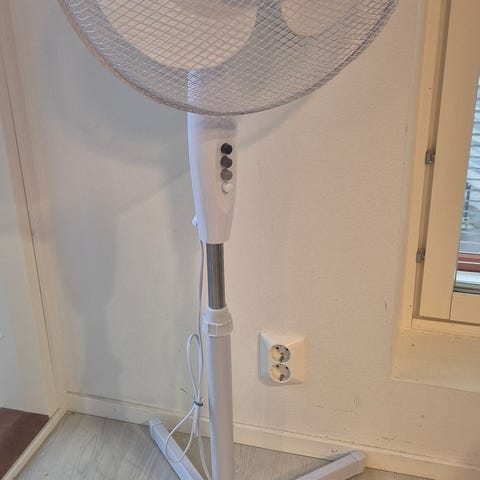 Täysmetallinen 93cm korkea tuuletin, lähtee käyntii muttei pyöri - eli fiksausta kaipaa