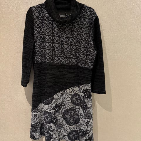 Myytävänä oversize-neuleponcho epäsymmetrisellä helmalla.