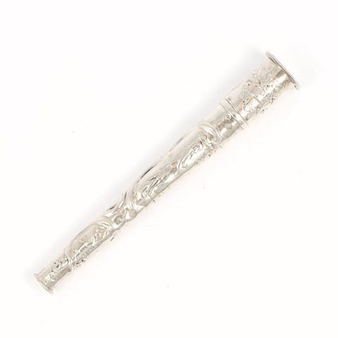 Kuvaus: Kaunis vauvan helistin karhun kanssaLähtömaa: NederlandHopeaseppä: J. NiekerkVuosi: 1960-1970Keurtekens: Meesterteken, 835, ZII-waarborgkeurHyvässä kunnossaPaino: 19,4 grammaaLaatu: 835/1000.Mitat: Pituus 12,5 cmValokuvien ottaminen on osa kuvausta.Kavelin numero: A-11475Kaikki tuotteemme lähetetään rekisteröidyllä postilla.Voit myös noutaa erän jostakin yli 100 toimistostamme Hollannissa, Belgiassa tai Saksassa.Käykää katsomassa Goudwisselkantoorin verkkosivustoa (NL ja BE), Comptoir de l’Or (BE) tai Goldwechselhaus (DE) löytääksenne lähimmän toimipaikan.Ilmoitatte mieltymyksenne Catawiki-tilinne kautta.