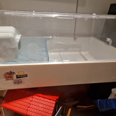 Ferplast hamsterin häkki, jossa on muovinen ja metallinen rakenne. Malli Duna Fun Large 71,5 x 46 x 41 cm. Häkki on siisti käytetty. Oranssin teipin kohdalla ja alla halkeama, mutta ei ole haitannut käyttöä. Nouto Vantaan Nikinmäki. MobilePay käytössä.