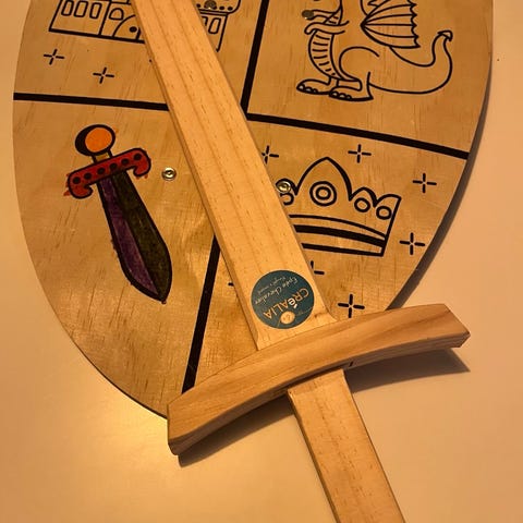 Myydään 1700-luvun markkinoilta ostettu käsityönä tehdyt miekka ja kilpi.