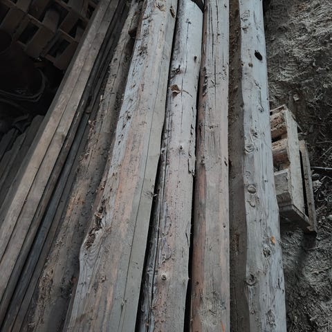 43 kpl kuvan mukaisia vanhoja purettuja hirsiä.