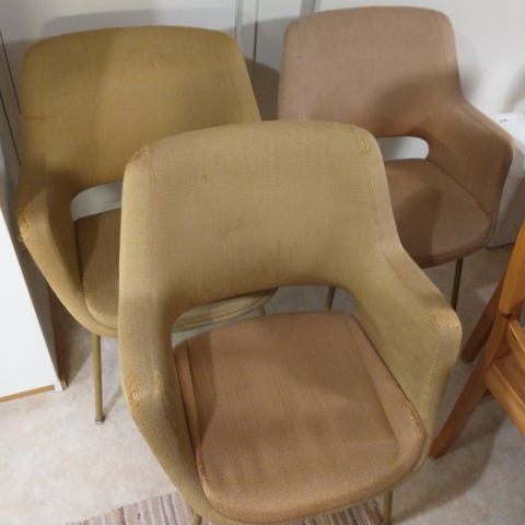 Myydään 3 kpl Kilta-tuoleja. Verhoilussa likaa ja tummumaa. Ei ole kokeiltu puhdistaa. Kangas vaikuttaa kuitenkin ehjältä.
