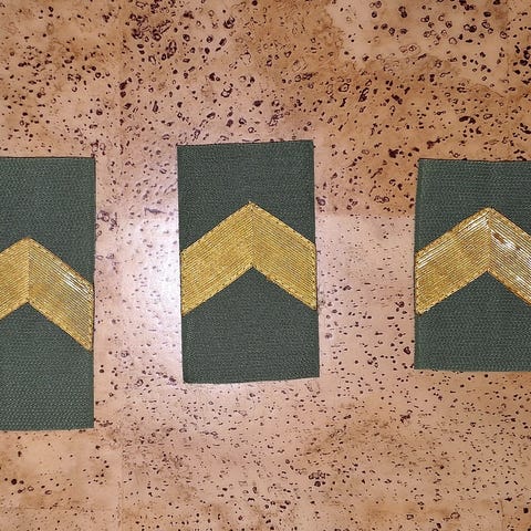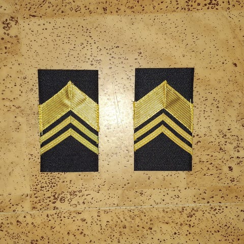 Sotilasmestarin hihamerkki. 10 €/kpl. Postitus sis.
