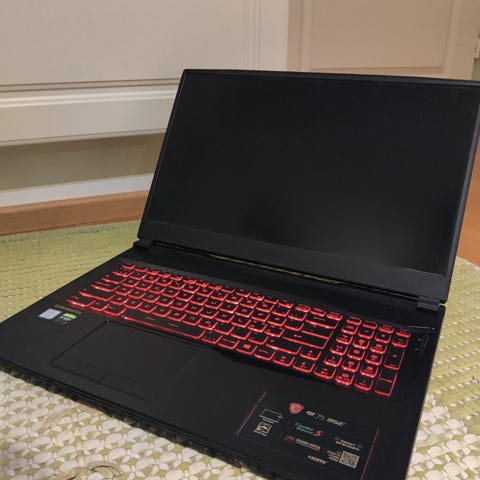 Uskomattoman hyvin pidetty, tyylikäs musta-kultainen MSI pelikannettava.