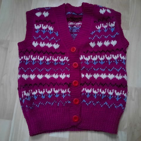 Ei ole ollut käytössä. Liivin pituus 54 cm ja leveys kainaloiden kohdalta 36 cm.