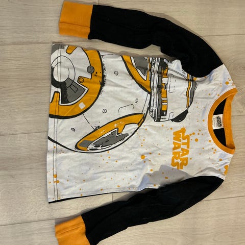 Lasten pyamas Star Wars koko 116. Jotain pientä käytön jälkeä saattaa löytyä, mutta pyama on yleisilmeeltään siisti ja ehjä.