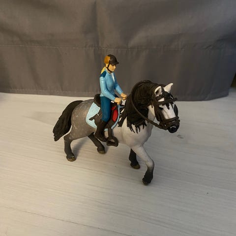 Schleich setti,joka sisältää kuvan hahmot,hevoset,varusteet ,pilttuun ym.