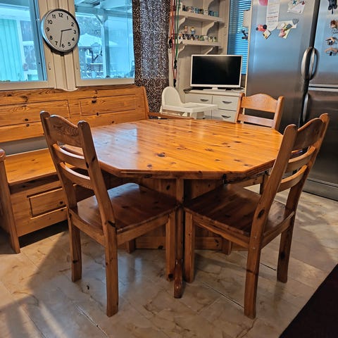 Myydään Kruunukalusteesta aikoinaan ostettu täysipuinen ruokailuryhmä.