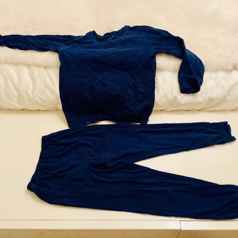Lasten pyama koko 120. Jotain pientä käytön jälkeä saattaa löytyä, mutta pyama on yleisilmeeltään siisti ja ehjä.