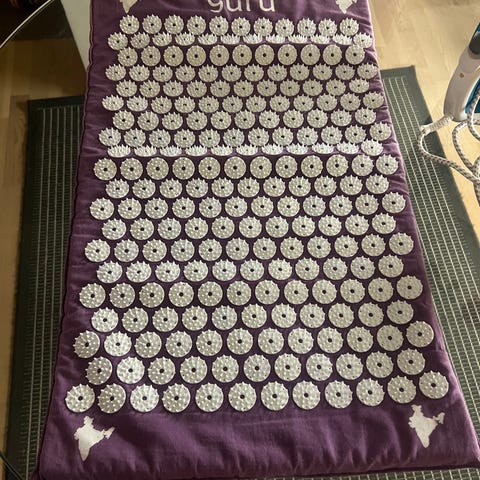 Akupainehoitomatto ja sininen niskatuki, joka on muotoiltu sopimaan niskan alle. Tuoteet soveltuu rentoutumiseen ja lihasjännitysten lievittämiseen.