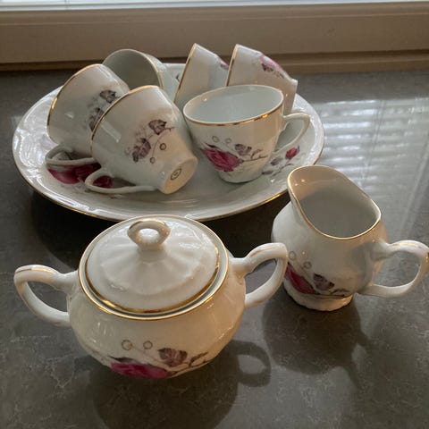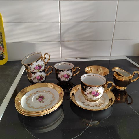 Schumann Valkoinen Posliini Monika kahvikuppi ja lautaset