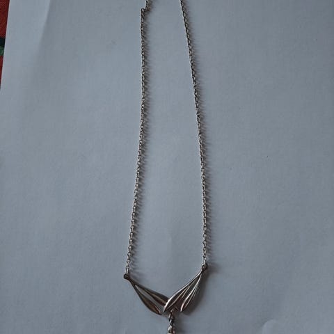 Kalevala hopeinen Kielo kaulakoru naisille. Korussa on hopeasta valmistettu ketju ja koristeellinen riipus, joka koostuu useista hopeisista lehtimäisistä osista ja pienestä riippuvasta elementistä.