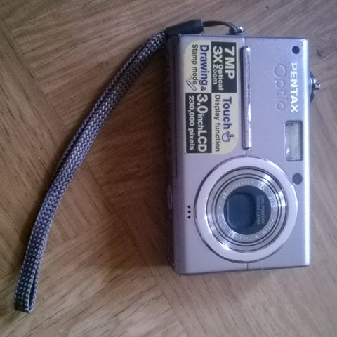 Canon Prima 76, digifilmikamera, Canon Powershot G3, Nikon Coolpix S570. Kaikissa akut, laturit puuttuu. Samsung Digimax D73, sammuu heti, kun laittaa virran päälle. Tamron 1:38, 80-210 mm, lievä osuma, linssit ehjät. Canon zoom-converter 0.8-1.35. Lastolite Professional, 80 cm, hopea/valkea.