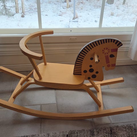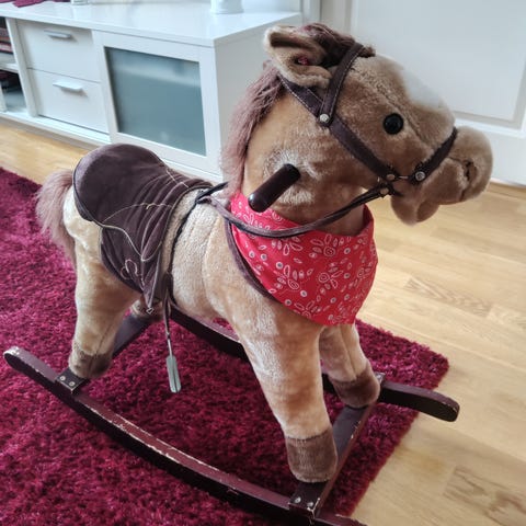 Hieno ja jämäkkä keinuheppa odottaa pientä ratsastajaa. Ostettu meille huonekaluliikkeestä. Keinuu hyvin ja äänettömästi. Jalasten pohjassa huopanauhat.