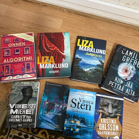 Liza Marklundin kirjoittamat kirjat Rautaveri ja Paikka auringossa. Teokset ovat suomenkielisiä ja kuuluvat dekkarigenreen.