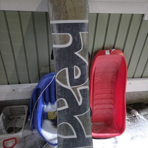 Head lumilauta pituus 140 cm, värit valkoinen ja vaaleanpunainen. On jo vähän elämää nähnyt, kanteissa muutamia kolhuja, toista sidettä vähän fiksailtu lisäosalla ja pohja kaipaisi vahauksen. Muuten ihan soiva peli seuraavalle, itse opetellut tällä laskemaan :) Nouto Espoon Lintuvaarasta ja maksu mielellään MobilePay.