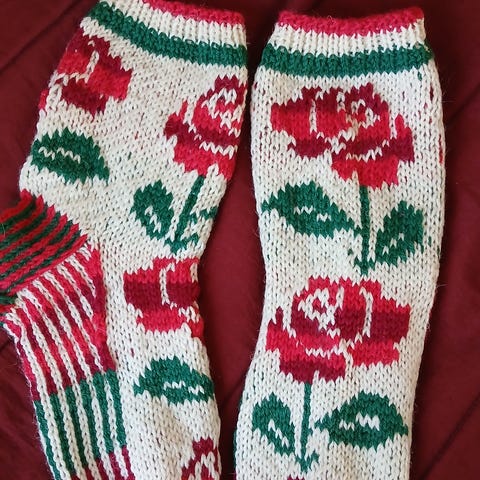Koko 38-40. Varsi pituus 48 cm. Tehty 7-Veljestä langasta. Ostaja maksaa mahdolliset postikulut 8.90