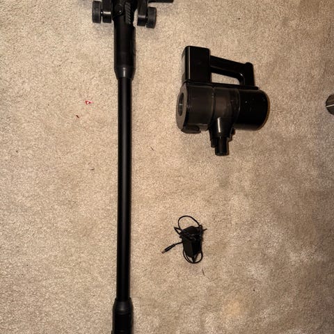 Pointin langaton pölynimuri, hyvässä kunnossa, rungossa pieniä käytön jälkiä mutta muuten toimiva!