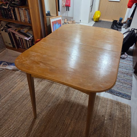 Myydään kaunis vanha design, Olof Ottelinin suunnittelema, Keravan Puusepäntehtaan valmistama Rondo-ruokapöytä.
