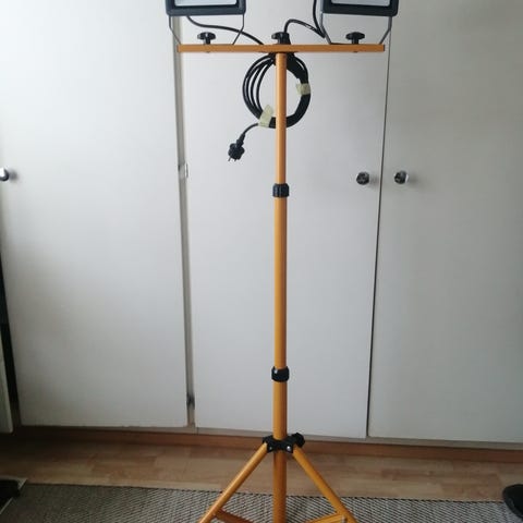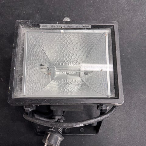 Työmaavalaisin JOEL merkkinen. hyvin vähällä käytöllä ollut. takana oleva pistorasia takana saa virtaa eteen päin.