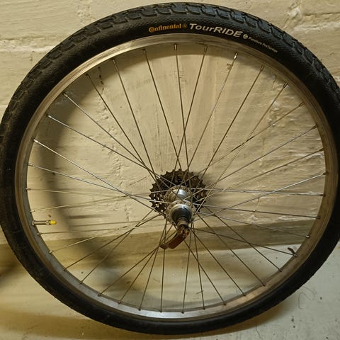 Mukana 9-lehtinen takapakka (Shimano). Vannejarruille, pikalinkut mukana.
