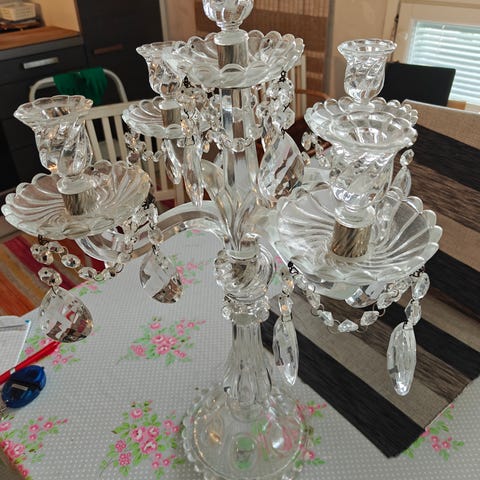 Turun Kristallin messinkinen kynttelikkö kristalliprismoilla