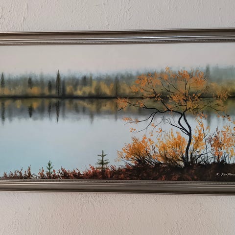 Signeerattu taulu, jossa maisemamaalaus. Maalaus on vuodelta 1979 ja siinä on näkymä Lapista. Kehystetty kullanvärisellä kehyksellä.Vain nouto.Käteinen tai mobilepay.Tarjoa!